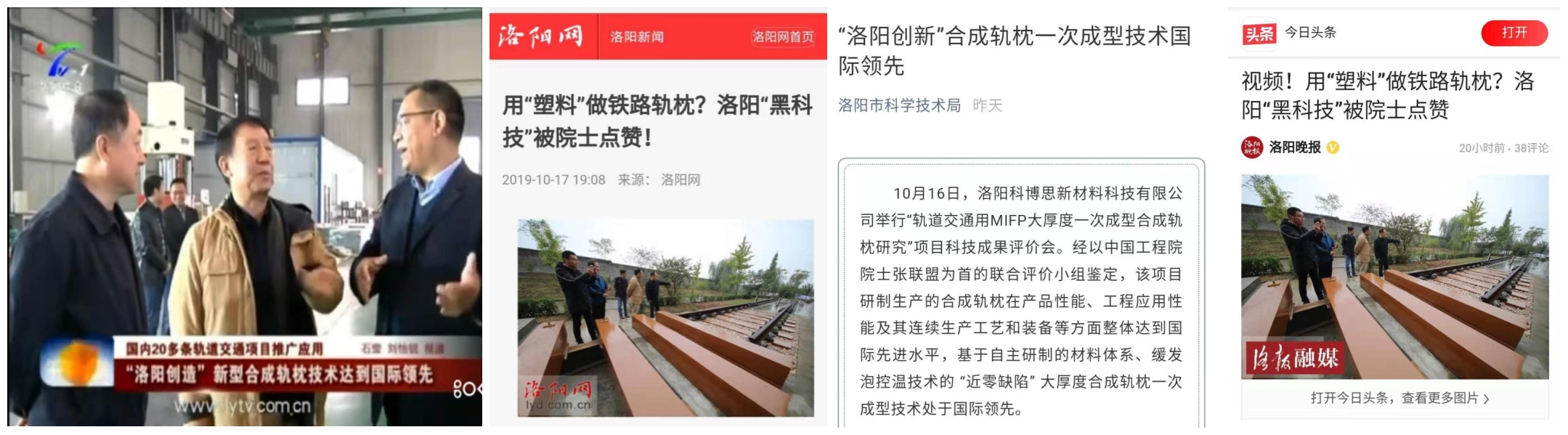 10月16日,洛陽科博思新材料科技有限公司的“軌道交通用M-IFP大厚度一次成型合成軌枕研究”項目科技成果鑒定評價會在洛陽圓滿完成。經以中國工程院院士張聯盟為首的聯合評價小組鑒定,公司研制生產的M-IFP大厚度一次成型合成軌枕在產品性能、工程應用性能及其連續生產工藝和裝備等方面整體達到國際先進水平,基于自主研制的材料體系、緩發泡控溫技術的 “近零缺陷” 大厚度合成軌枕一次成型技術處于國際領先。河南日報、洛陽日報、洛陽電視臺、洛陽晚報、市科技局、今日頭條、《世界軌道交通》等媒體紛紛進行了報道,給予了高度評價和贊譽!